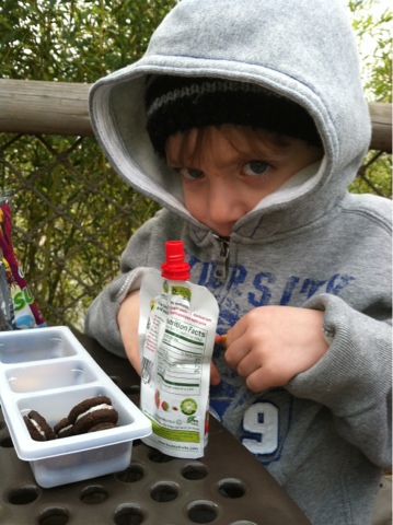 | Gaines freezing at lunch. "Mommy, I cannot feel my fingers!" Gotta love Spring Weather in Tennessee. |